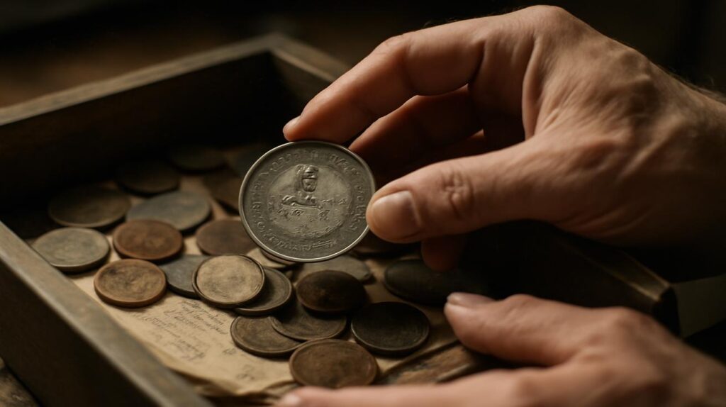 Zwischen Gummibändern, vergessenen Kugelschreibern und vergilbten Quittungen blitzt plötzlich etwas Rundes, Silbernes auf. Du hältst inne. Die Schublade, die du